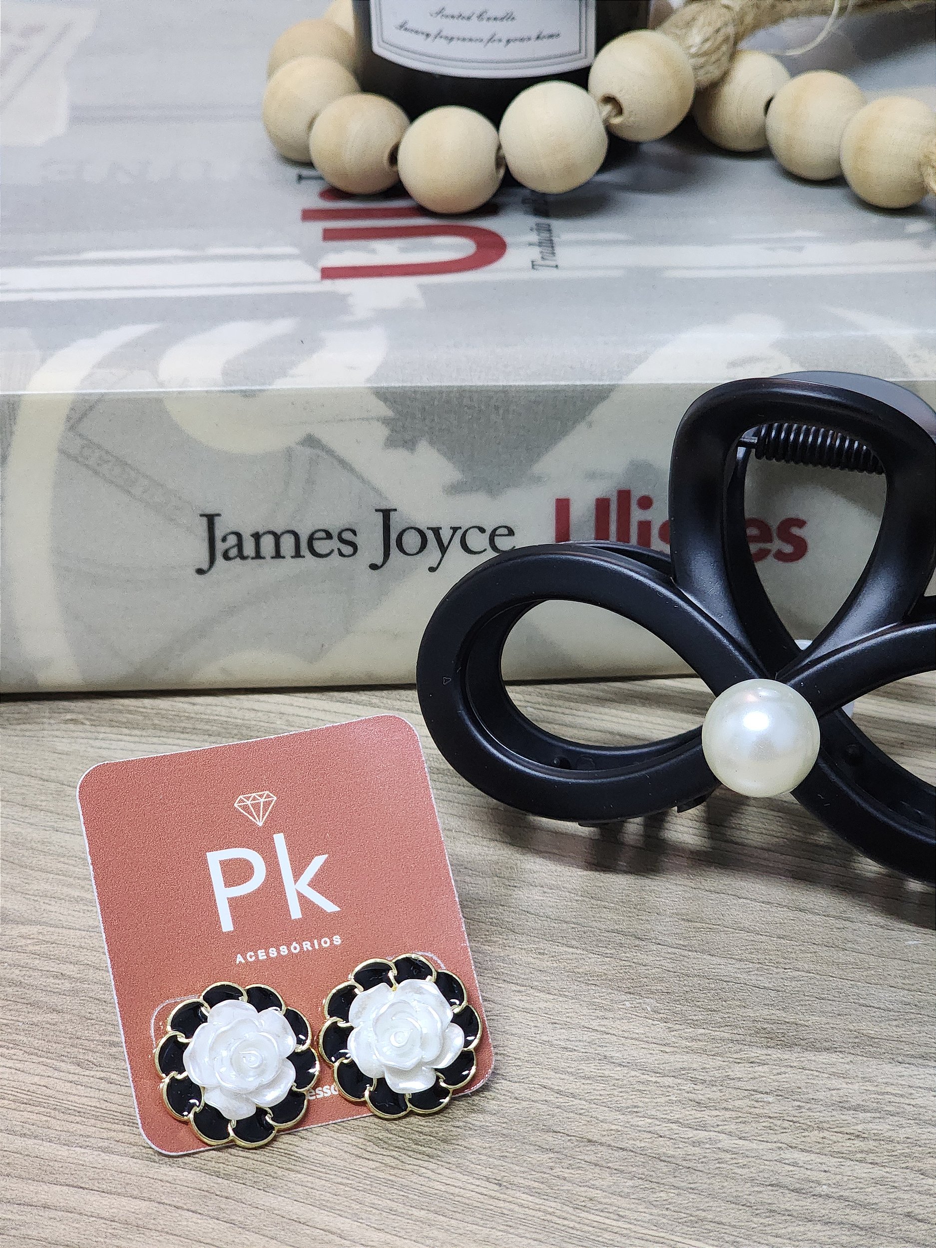 Elegante e atemporal, o Brinco Flor Noir é a definição de sofisticação em forma de acessório. Com design floral, ele combina pétalas em tom preto com acabamento dourado e uma delicada flor central em relevo perolado, criando um contraste marcante e super refinado.