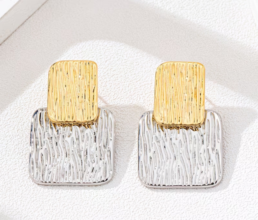 Moderno e sofisticado, o Brinco Geométrico Dual é a escolha perfeita para quem ama peças com personalidade. Com design marcante, ele combina o dourado com o prateado em um contraste elegante, além de texturas trabalhadas que trazem um efeito único e cheio de estilo.
