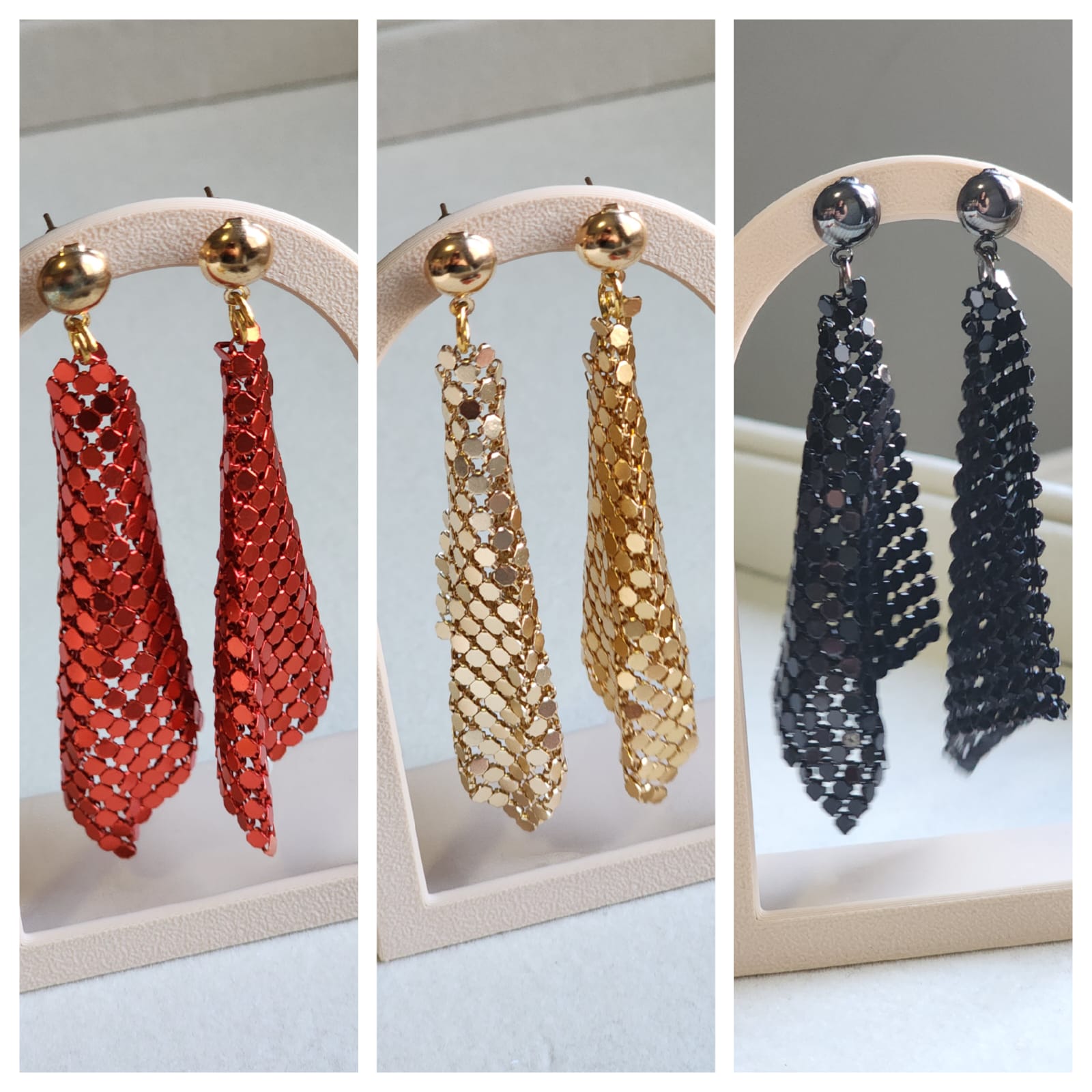 Brinco em Malha de Metal - Tapetinho Brilhante, um acessório sofisticado que garante brilho e estilo em qualquer ocasião. Com sua malha metálica delicada e trabalhada, este brinco oferece leveza e um toque moderno para seu visual.